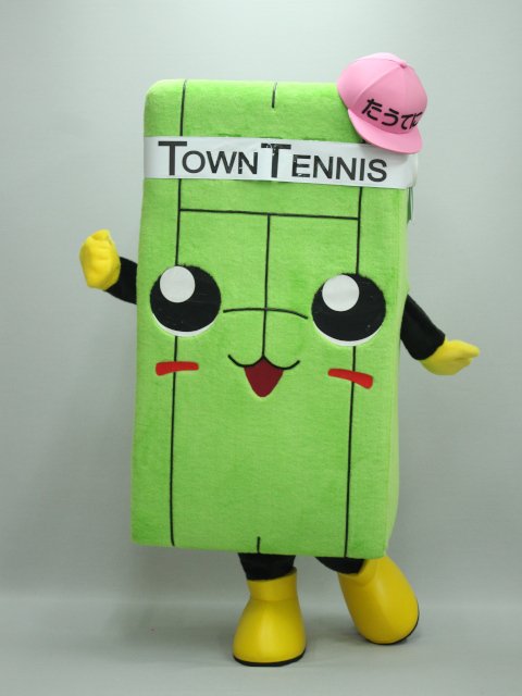 東京都練馬区にある、タウンテニス大泉学園様のマスコットキャラクター「たうてに君」!なんとテニスコート全体をモチーフにしたキャラクターです。テニススクールでテニスをしたいというご要望で腕や足の可動域も調整して製作させていただきました!