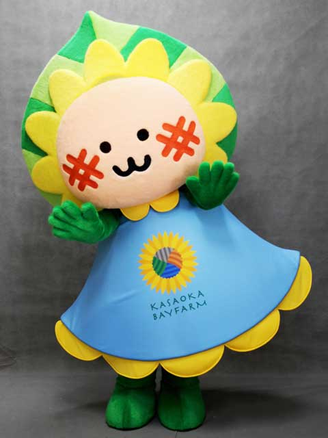 岡山県の笠岡湾干拓地にある道の駅笠岡ベイファームの公式キャラクター。お顔もお洋服も夏に地域一帯を彩るひまわりの花がモチーフになっています!